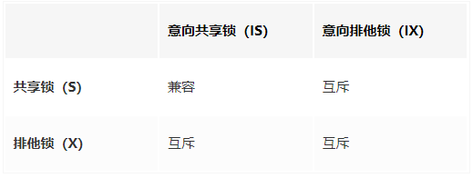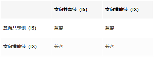 意向锁是怎么解决这个问题的呢?首先,我们需要知道意向锁之间的兼容互斥性: