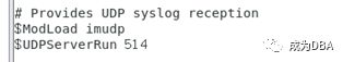 把 $ModLoad imudp 和 $UDPServerRun 514 前面的 # 去掉 。