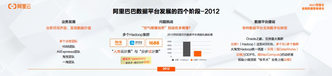 2009年到2012年,阿里巴巴电商业务进入爆发期,涌现出非常多有名的业务团队,比如淘宝、1688、AliExpresss、一淘等。每个业务都是基于数据驱动的全场景业务,业务方对数据有着强烈的诉求。