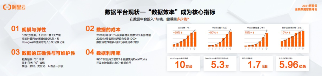 阿里巴巴主要从规模与弹性、数据的成本、数据的正确性与可维护性、数据利用率4个方面来衡量“数据效率”。