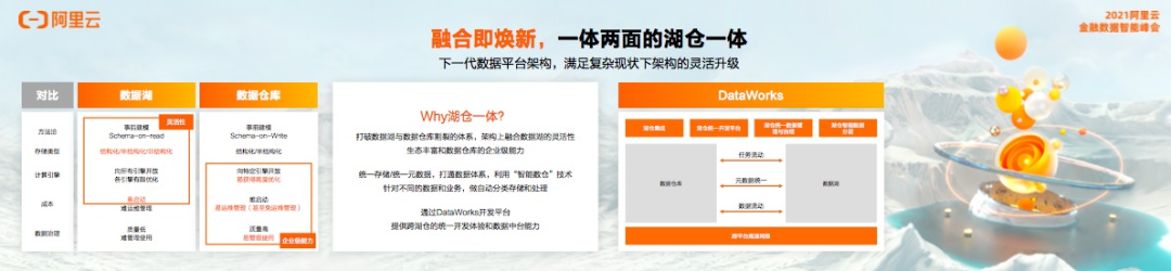如何打通数据湖和数据仓库割裂的体系,架构上融合数据湖的灵活性以及数据仓库的企业级能力,阿里巴巴提出的湖仓一体架构,统一存储和元数据,打通数据体系,利用智能数仓技术针对不同的数据和义务,做自动分类存储和处理。