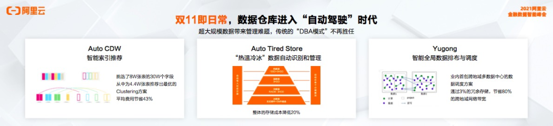 超大规模数据带来管理难题,传统的“DBA模式”已经很难胜任。阿里巴巴有超过千万级别的表,很多核心数据开发工程师,一个人负责上万张表,没有办法做精细化的治理和建模,这样的系统不能随人的方式扩展,所以未来,越来越多的AI技术会融合进大数据系统,进入“自动驾驶”时代。