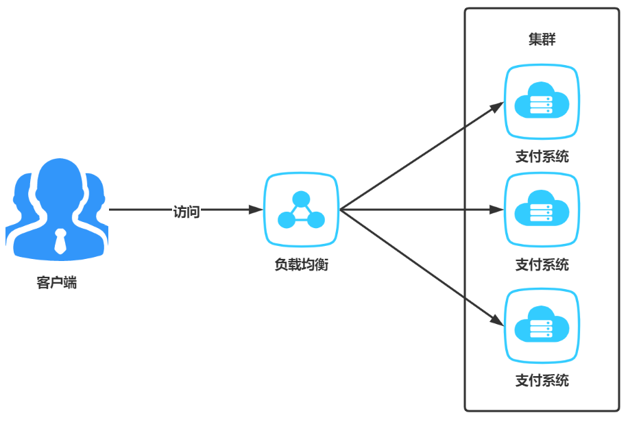 分布式架构往往要结合集群架构来提高可用性,例如支付系统被拆分为3个服务,为了提高每个服务的可用性,则每个服务都要采用集群模式部署。