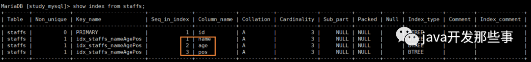 alter table staffs add index idx_staffs_nameAgePos(name, age, pos);