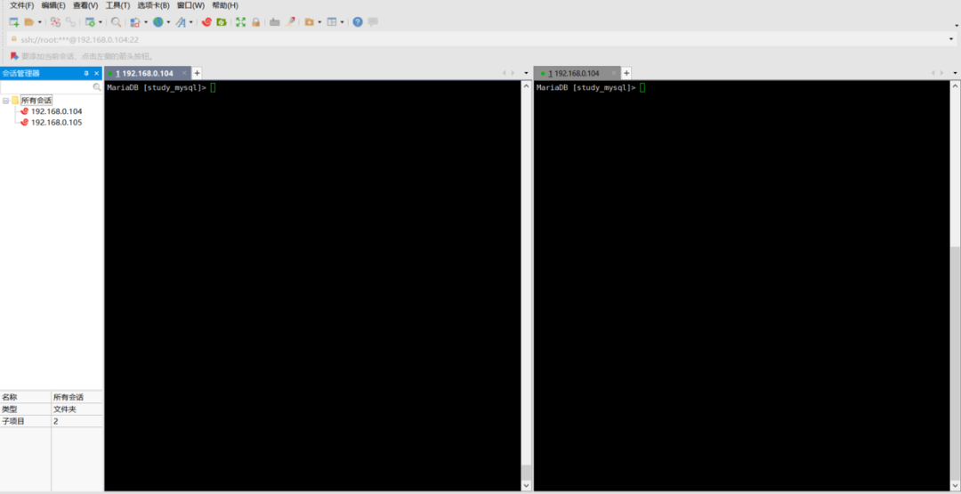 表加上读锁,然后打开两个session,暂且将左边的称为session1,右边的称为session2,如下: