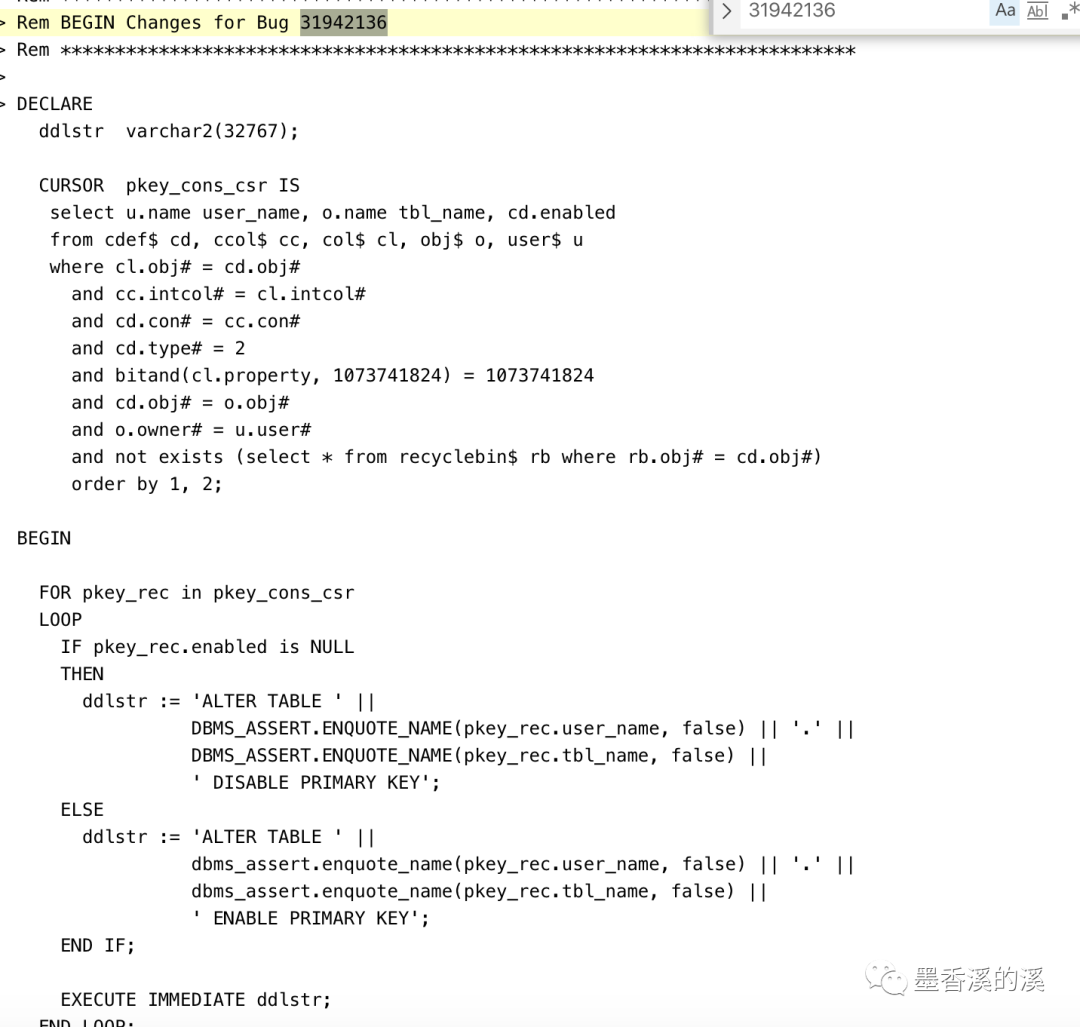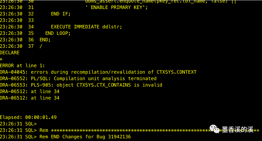 为了验证这个问题,我闪回了数据库,并备份,修改了c18.sql 文件,把夹在Rem BEGIN Changes for Bug 31942136 到Rem END Changes for Bug 31942136 的SQL移除了。再次升级,再紧张,焦急的等待中,发现竟然跑过去了。