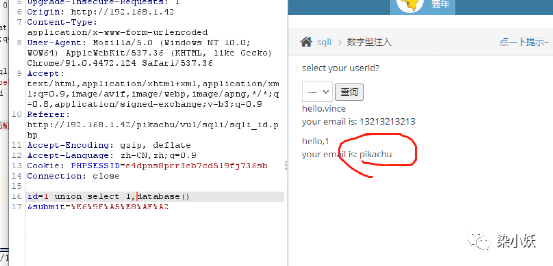 没有报错,说明存在两列,我们接着尝试查询数据库,payload:union select 1,database()