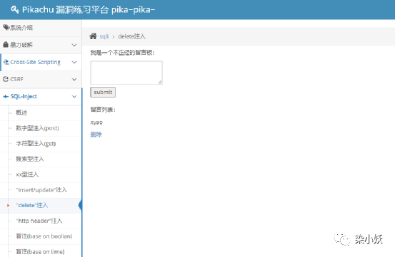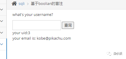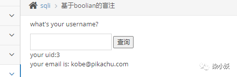 我们打开目标,在pikachu中,按照我们之前学习到的逻辑,不管是输入‘还是和之前kobe‘ or 1=1#都会显示错误,说明之前学习到的测试方法在本章节(盲注)中,是没有作用的,没有效果的: