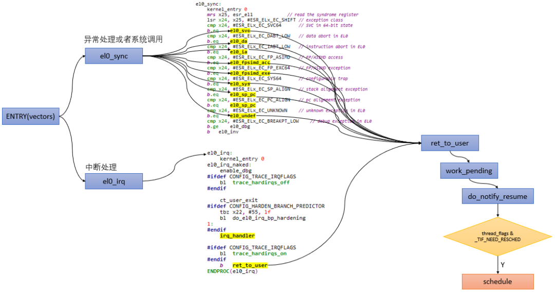 ret_to_user是系统调用,异常触发,中断处理完成后都会调用的函数。
