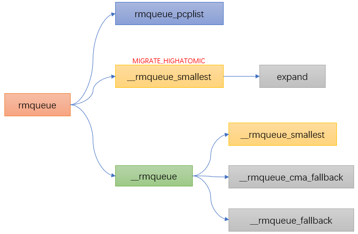 __rmqueue_fallback完成的主要工作就是从后备fallbacks中找到一个迁移类型页面块,将其移动到目标类型中,并重新进行分配。