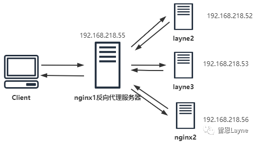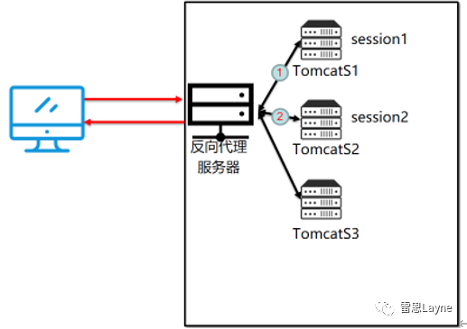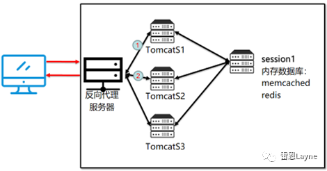 nginx1作为反向代理服务器,负责session共享、负载均衡、反向代理,区分动态请求和静态请求并转发给不同的服务器 layne2和layne3作为web服务器,部署了tomcat,负责解析动态请求 nginx2中存放的是静态资源,负责解析静态请求。