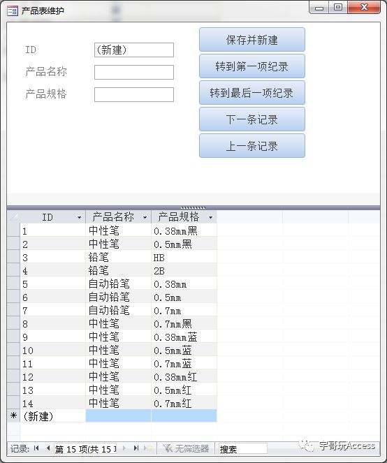 数据的输入是数据库开发的最核心设计之一。本软件由于功能比较简单,所以数据输入我采用了我最喜欢,也是最为成熟的分割窗体技术来进行。也就是说用一张窗体套一张表,通过在窗体中填数据来控制表中的数据。这是我最喜欢的数据录入方式,也是Access数据库比Excel的重大优势之一。