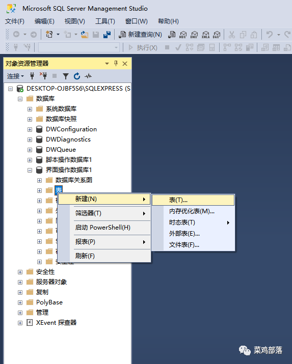 刷新数据库.打开选择创建表的数据库,打开表可以看见一个"dbo.数据表名称"的数据表