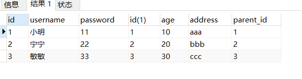 select a.*, ad.* from test_a as a left join test_a_description as ad on a.id=ad.parent_id;结果:
