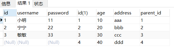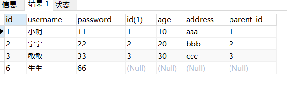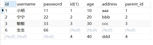 select a.*, ad.* from test_a as a right join test_a_description as ad on a.id=ad.parent_id;结果: