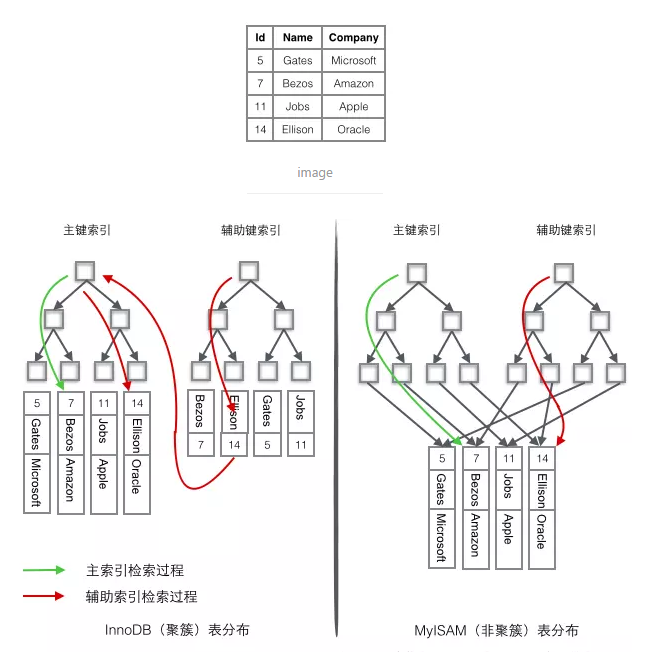 | 索引 | 聚簇索引 | 非聚簇索引 |