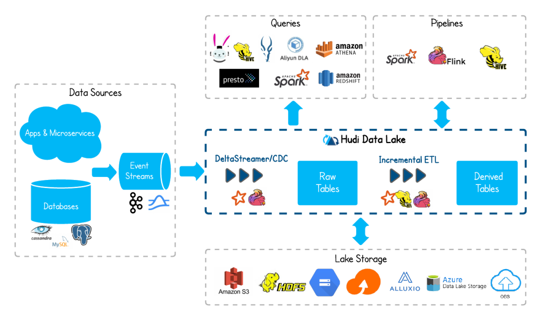 •可插拔索引机制:Hudi提供多种索引机制,可以快速完成对海量数据的更新和删除操作。•良好的生态支持:Hudi支持多种数据引擎接入包括Hive、Spark、Flink。