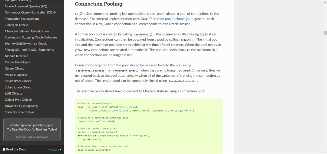 这是oracle官方开发的python操作oracle数据库的库。这个网址里大家可以看到整个库的使用教程,还可以下载pdf等版本。