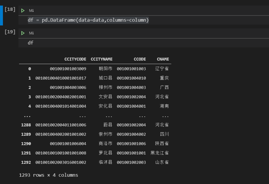 import pandas as pdclass DataFrame(data=None, # 要放入DataFrame的数据,可以是2维数组、字典或者DataFrame数据index: Optional[Axes]=None, # 索引列名称columns: Optional[Axes]=None, # 各列名称dtype: Optional[Dtype]=None, # 各列数据类型copy: bool=False) #df = pd.DataFrame(data=data,columns=column)