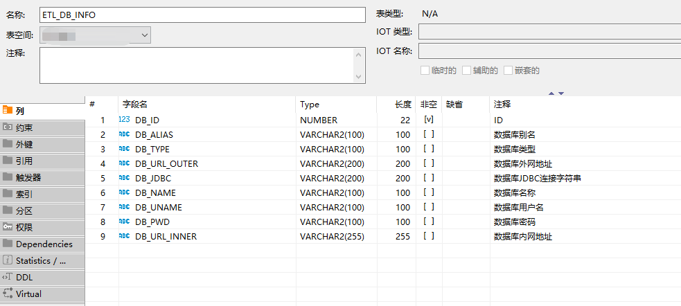 def get_db_info(plat_form,dbname):"""获取数据库的连接信息"""if plat_form == 'windows':BI_conn = db.get_BI20_outer_conn() # windows中我们用外网ipelse:BI_conn = db.get_BI20_inner_conn() # linux中我们用内网ipsql = f'''SELECT * FROM ETL_DB_INFO WHERE DB_ALIAS = '{dbname}''''db_info = pd.read_sql(sql,BI_conn)return db_inforeader_dbinfo = get_db_info(plat_form,reader_db)writer_dbinfo = get_db_info(plat_form,writer_db)