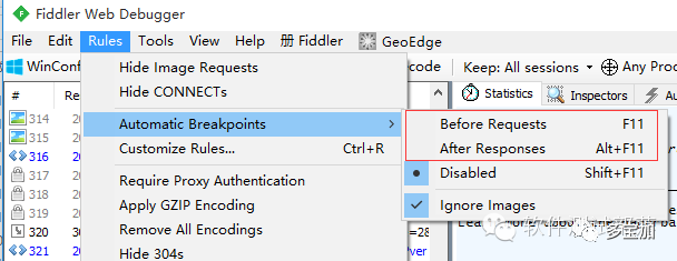 这是Fiddler又一强大和实用的工具之一。通过设置断点,Fiddler可以做到: