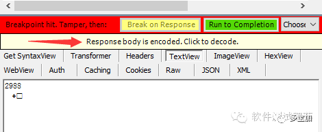 4.右侧区域,显示:response body is encode,click to encode(这个前面的讲过)点击此处就可以了
