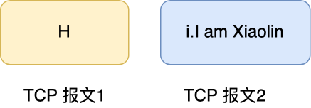 第二种情况,「I am Xiaolin」的部分随 「Hi」 在一个 TCP 报文中发送出去,像这样: