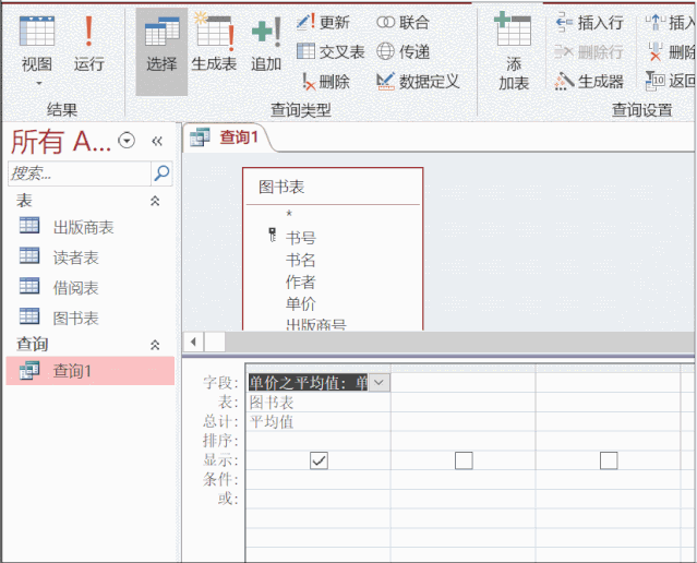 问题要求统计图书表中书的单价的平均值?