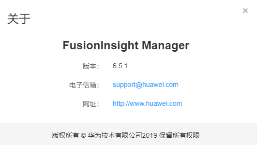 ,在下拉框中单击“关于”,在弹框中查看FusionInsight Manager版本号。说明:
