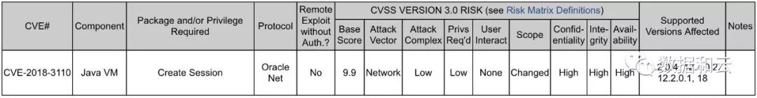 当然这个漏洞是需要前提条件的,CVE-2018-3110 需要一个数据库用户,具备最基本的CREATE SESSION,也就是说能够创建会话,连接到数据库。然后,基于对于公共 JAVA 对象的访问,获得权限提升,直至全部控制数据库。