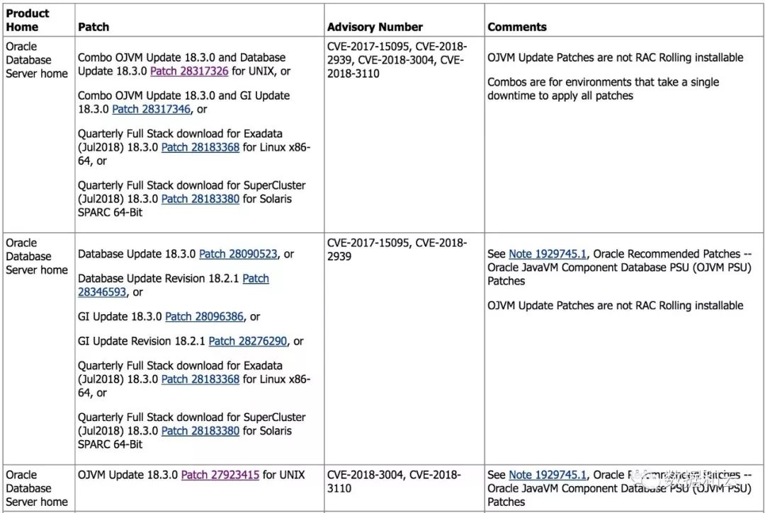 CVE-2018-3110还影响Windows上的12.1.0.2以及Linux和Unix上的Oracle数据库,但是这些版本和平台的补丁包含在2018年7月的CPU中。