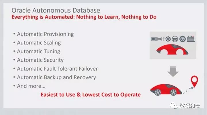 Nothing to Learn, Nothing to Do. 这句宣传语在 Larry 的演讲中被重复了很多次。我们可以将自治数据库想象成自动驾驶,在没有自动驾驶之前,驾驶员要开一辆车从 A地 到 B地,需要先考取驾照,还需要学习很多技巧,并且在开车的过程中仍然需要集中精力,否则容易出差错。