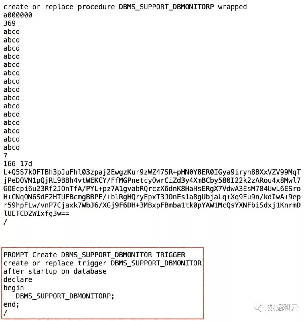这个程序包文件最后被注入了一个触发器,这个启动触发器,当数据库启动之后被触发执行: