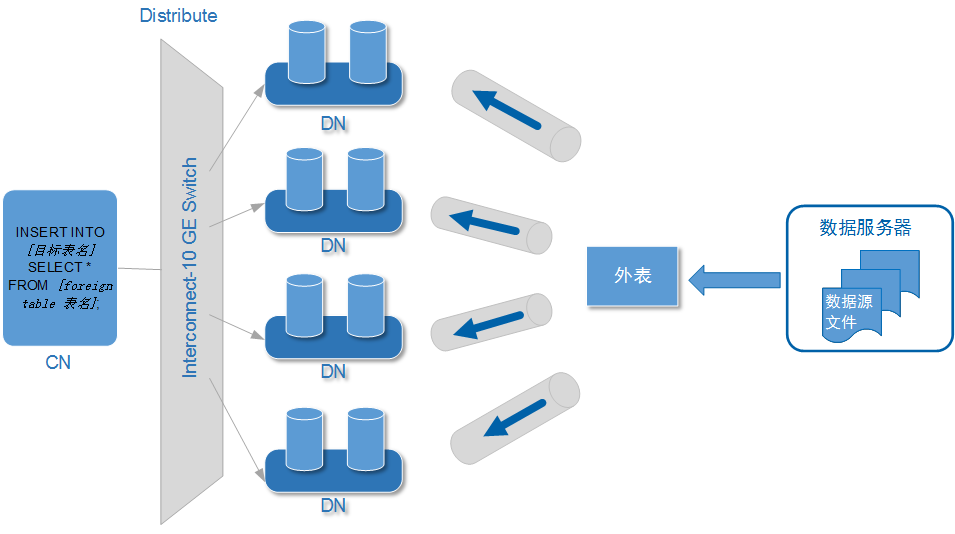 - 所有DN都参与数据导入,这样可以充分利用各设备的计算能力及网络带宽,提升导入效率。