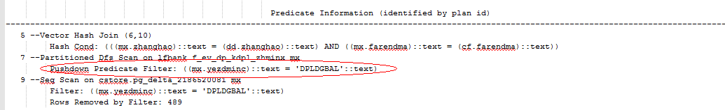 分析发现上述计划的性能瓶颈点为lfbank.f_ev_dp_kdpl_zhminx的scan。进一步分析此表的Scan条件如下: