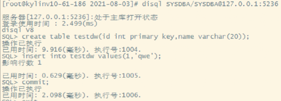 DW_P | 10.0.61.186(外部) 192.168.0.186(内部) | 麒麟V10 (4.19.90-23.8.v2101.ky10.x86_64) | 主库 实例名:DMNODE1 库名:DMDB |