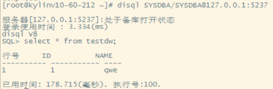 DW_S1 | 10.0.60.212(外部) 192.168.0.212(内部) | 麒麟V10 (4.19.90-23.8.v2101.ky10.x86_64) | 从库 实例名:DMNODE2 库名:DMDB |