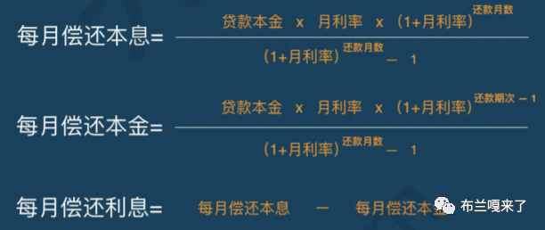 第三个公式,每月偿还利息等于第一个公式减去第二个公式。
