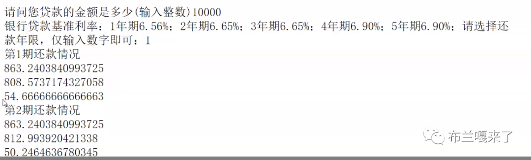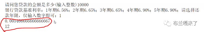 可以看到,如果贷款年限为1,打印出月利率为0.005466,还款月数为12个月。