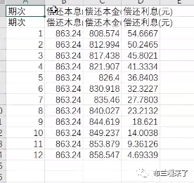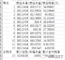 注意,detaillist.csv是我们实际创建的文件名,而listfile是python代码中的名字。而且with方法不需要自己关文件。import csvwith open(“detaillist.csv”,”a”,newline=’’,encoding=’GBK’) as listfile: writer=csv.writer(listfile.dialect=’excel’) header=[‘期次’,’偿还本息(元)’,’偿还本金(元)’,’偿还利息(元)’] writer.writerow(header) #3.2、for循环计算的数据放入文件写入中for i in range(1,loan_month+1): print(“第”+str(i)+”期还款情况”)#2.2.1、每月还款总额month_money=total_loan*month_rate*((1+month_rate)**loan_month)/((1+month_rate)**loan_month-1)#2.2.2、每月偿还本金month_capital=total_loan*month_rate*((1+month_rate)**(i-1))/((1+month_rate)**loan_month-1)#2.2.3、每月偿还的利息month_interest=month_money-month_capital#3.2.1、将每一期数据写入到文件中writer.writerow([i,month_money,month_capital,month_interest])#2.3.2、累计还款总额计算sum_money=sum_money+month_money#2.3.3、累计还款利息sum_interest=sum_money-total_loanprint(sum_money)print(total_loan)print(sum_interest)
