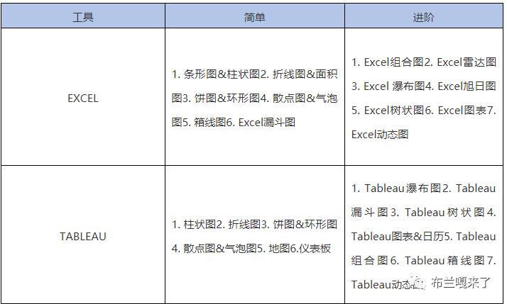 具体的可视化图形有哪些?我们会主要涉及到EXCEL和TABLEAU.