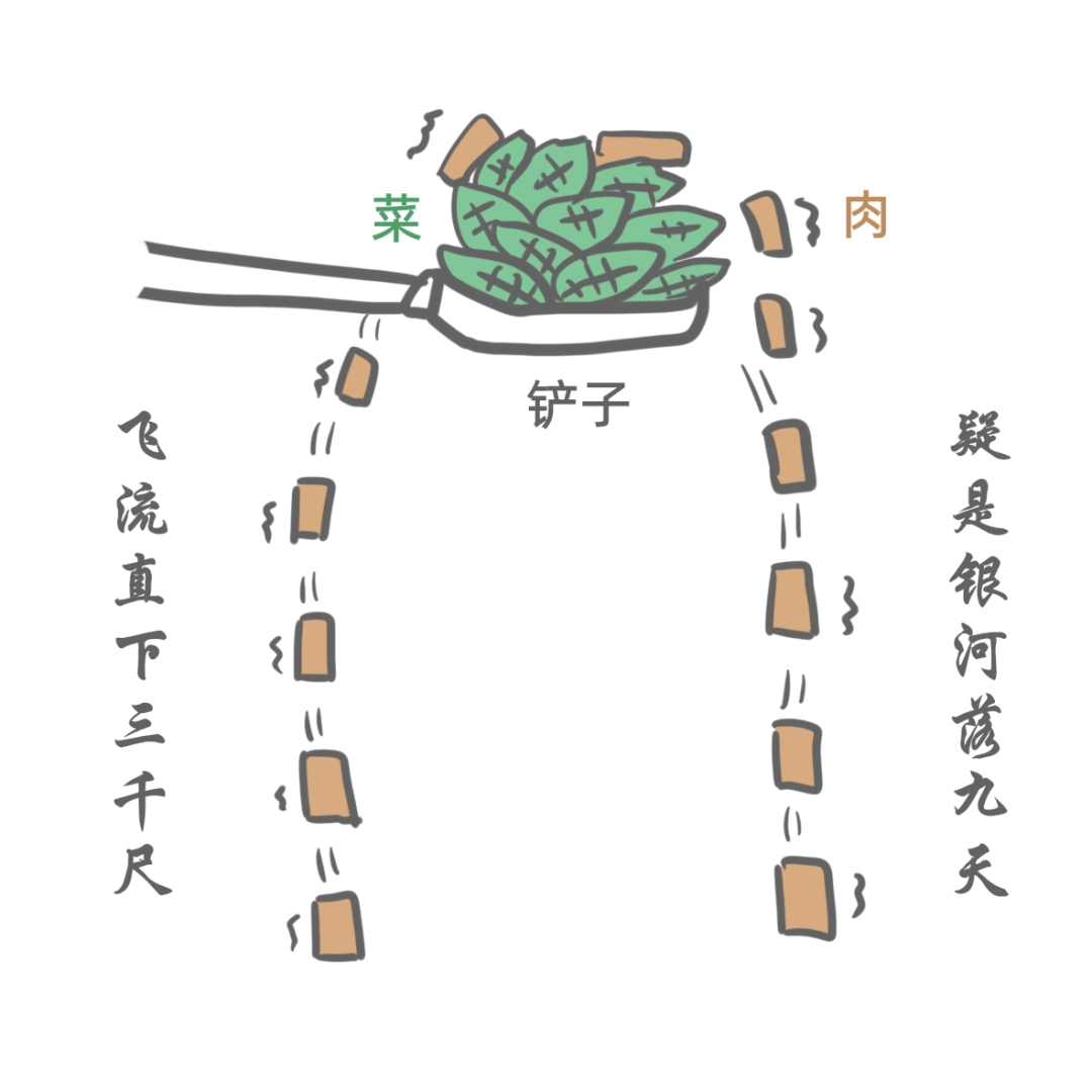饭堂阿姨打菜的时候会想到一些诗词歌赋,比如什么飞流直下三千尺,抖一下肉掉下去的时候会有这种效果。