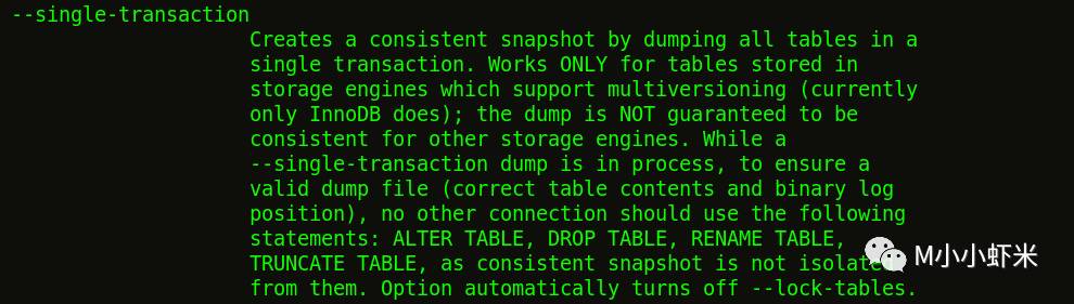 mysqldump命令在做备份时,通常需要跟single-transaction和master-data两个参数一起使用才能保证数据的一致性,所以在分析之前,我们先简单介绍一下这两个参数的含义: