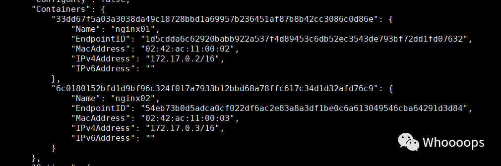我们自己创建的nginx01和nginx02在没有指定网络模式的情况下,自动放进bridge中。