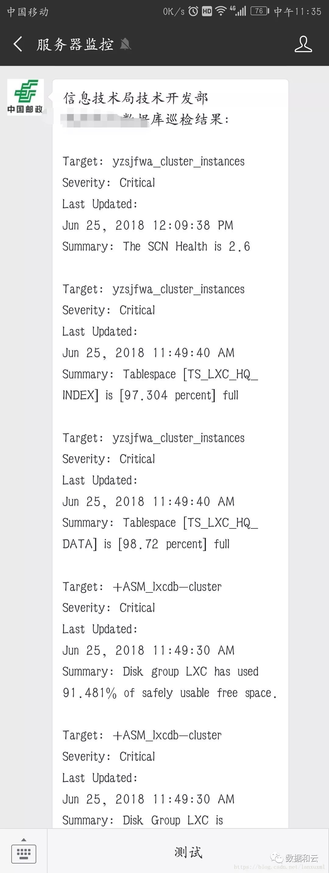 通过这样的监控设置,将信息及时送达,即起到通知的及时性,又实现了自动化流程,一定的减少了DBA的工作量。