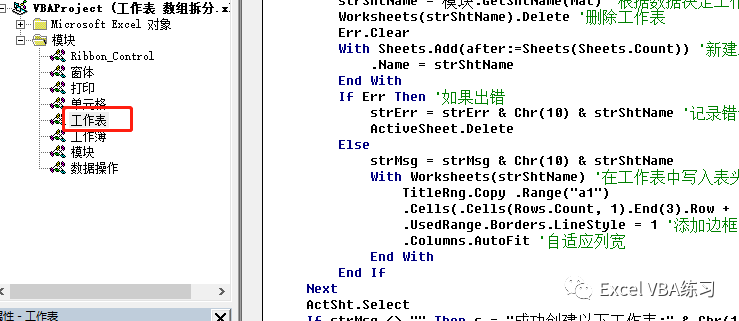 小编觉得这样方便管理一些,比如说我们对单元格的操作就写在单元格的模块中,写对工作表的操作就全部写在工作表的模块中,而自定义的封装,我们就可以写在模块中,en~!~,可以把之前单元格操作写进去....