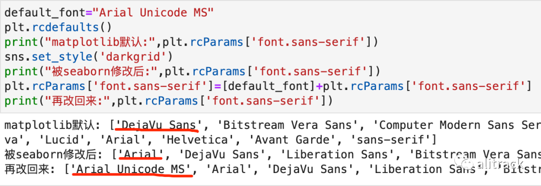 default_font = 'Arial Unicode MS'from matplotlib import pyplot as pltplt.rcParams['font.sans-serif']=[default_font]+plt.rcParams['font.sans-serif']plt.rcParams['axes.unicode_minus']=False # 确保正常显示减号➖